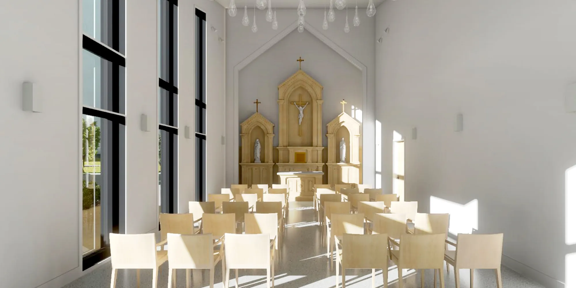 The Holy Cross Sisters project is a two-story residential and community facility that supports the Sisters’ daily life and mission. The design creates a calm, functional, and light-filled environment that balances private living with shared spaces, reflecting values of humility, peace, and devotion.