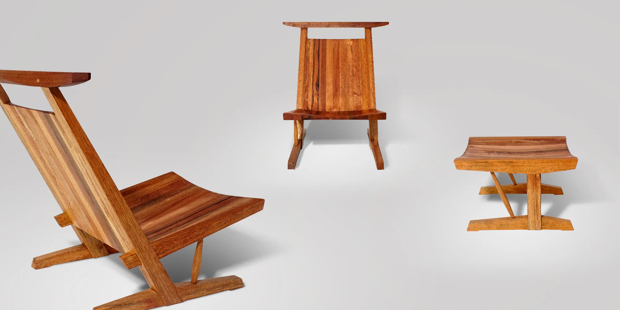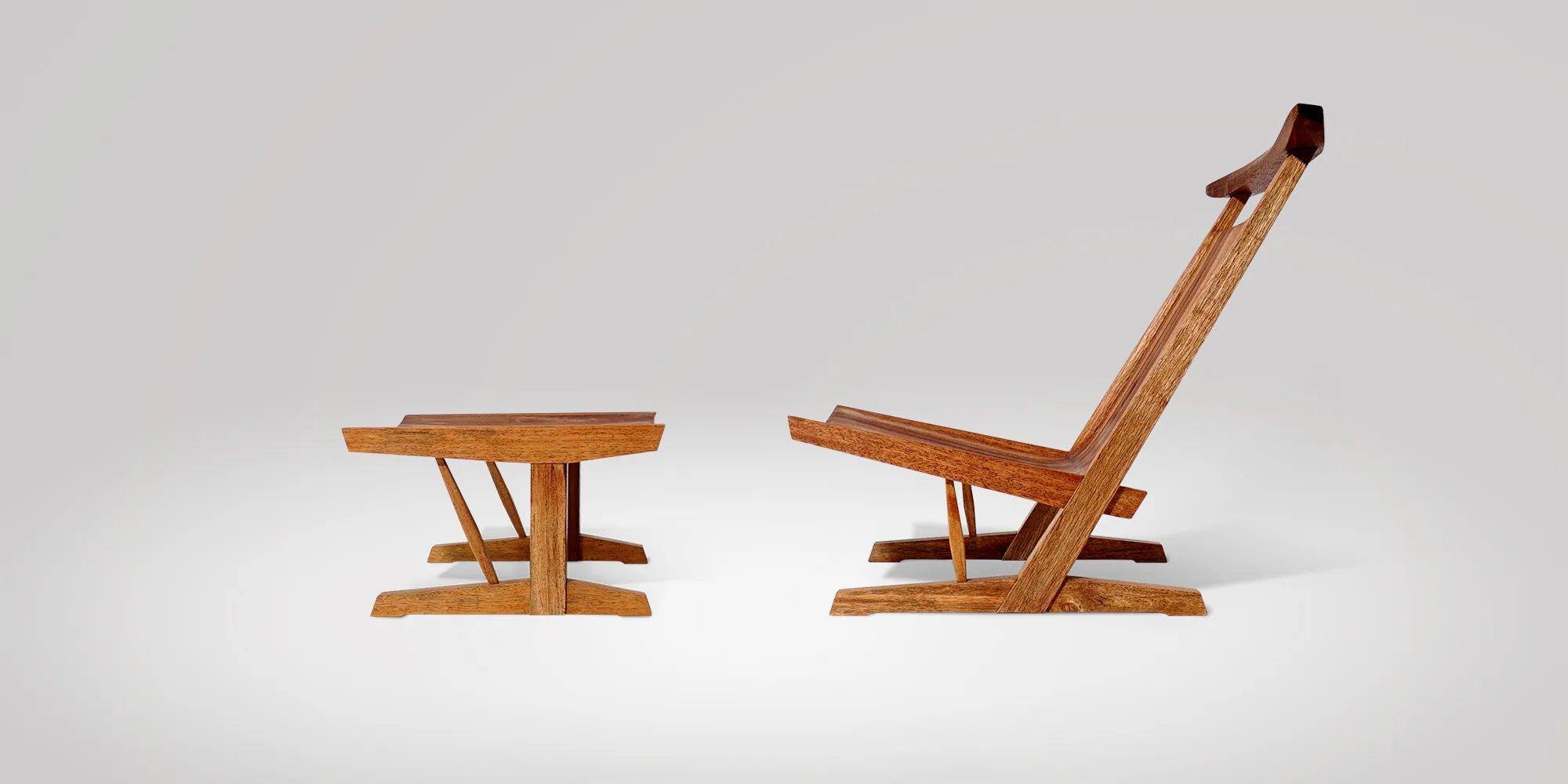 The Lounge Chair blends sculptural form with ergonomic comfort, handcrafted from solid hardwood to express strength and warmth. Influenced by George Nakashima’s respect for natural wood, it highlights organic grain, refined joinery, and minimalist geometry—where craftsmanship and material honesty define timeless simplicity.