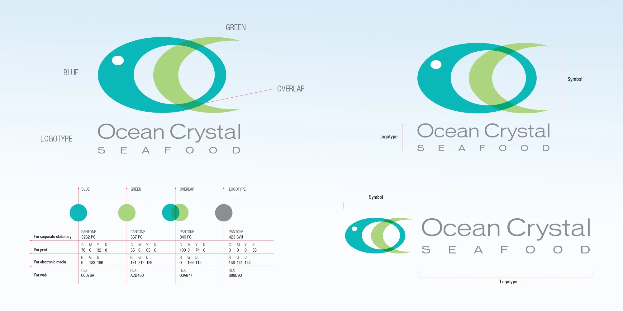 Ocean Crystal Seafood supplies fresh and frozen seafood to wholesale distributors across the North Pacific. The rebrand focused on clarity, freshness, and trust — captured through a clean identity where two interlocking fish forms symbolize transparency and partnership. A flowing wave motif and aqua palette extend across print, packaging, and digital platforms, expressing purity and movement.